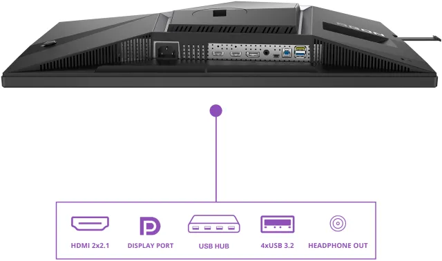 - DisplayPort, HDMI, USB Type-A vers USB Type-B