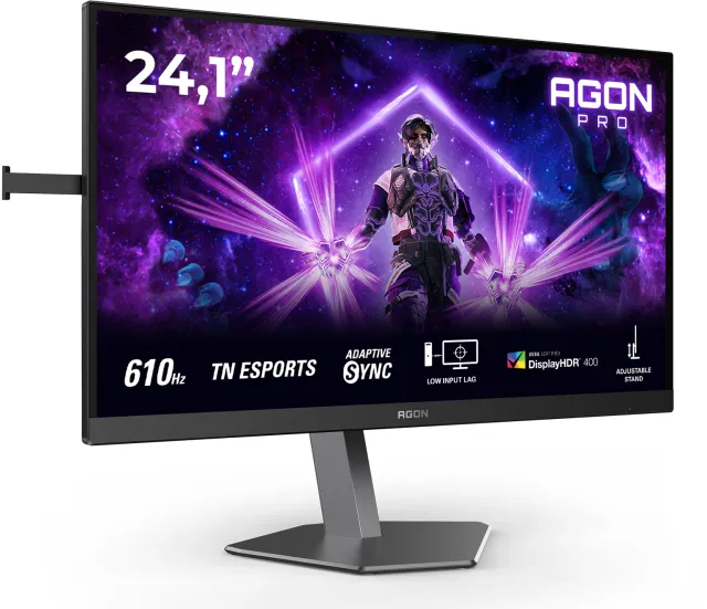 Dépassez toutes les limites avec le moniteur de jeu AG246FK6 610 Hz, TN eSports - Vitesse et précision inégalées ! Entrez dans le futur du jeu compétitif avec le moniteur AG246FK6 doté d'un taux de rafraîchissement inégalé de 610 Hz sur une dalle TN eSports pour des temps de réponse ultra-rapides et une clarté de mouvement incomparable. Avec un décalage en entrée ultra-faible, un MPRT de 0,5 ms et la technologie HDR400, chaque image est d'une netteté et d'une fluidité exceptionnelles. La connexion HDMI 2.1 assure une connectivité de nouvelle génération et le support ergonomique apporte un confort optimal pendant les longues sessions. Optimisez votre expérience de jeu grâce au logiciel G-Menu et ses réglages personnalisés. Ce moniteur est conçu pour vous offrir un avantage compétitif ultime. Êtes-vous prêt à repousser toutes les limites ?
