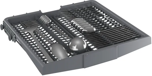 Ce lave-vaisselle est équipé d’un tiroir à couverts, positionné en haut de l’appareil, qui permet de ranger les petits couverts fins et d’optimiser ainsi l’espace intérieur pour les éléments plus encombrants.