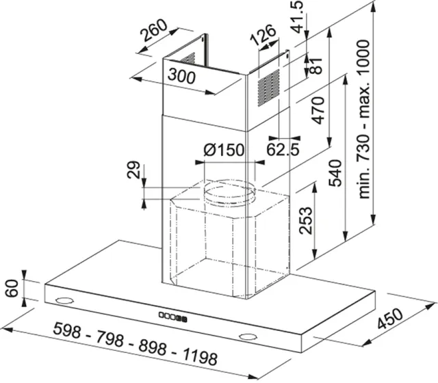 Voir les bons plansFranke Tale 915 W XS Montée au mur Acier inoxydable 700 m³/h