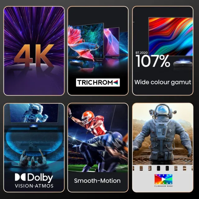 - High Dynamic Range 10 (HDR10), High Dynamic Range 10+ (HDR10 Plus), Hybrid Log-Gamma (HLG)