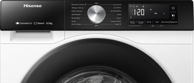 - Allergy Care, Big LED Display, Verrouillage enfant, Application ConnectLife, Nettoyage du tambour, Durable Inverter, Favourite, Half load, Hygiene Guard, Moteur à onduleur, Jet Wash, Pause & Add, PureJet, Lavage rapide, Quick Wash (15min), Self-Diagnostic, Smart Assist, Smart Link, Vapeur