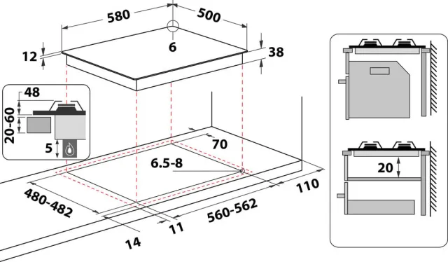 - 16e/470 parmi les plaques de cuisson Whirlpool au gaz