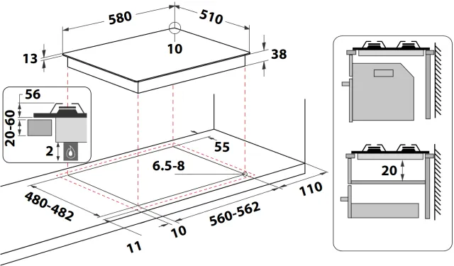 - 489e/634 parmi les plaques de cuisson Candy 4 feux