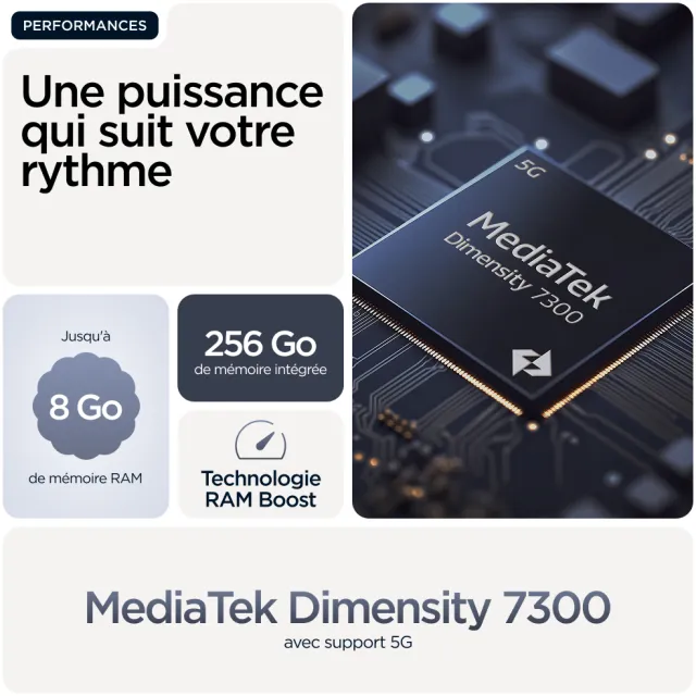 Il s'agit d'un smartphone compatible 5G, c'est à dire que la rapidité de la connexion internet est jusqu'à 10 fois supérieure à la 4G.