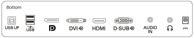 - VGA, HDMI, DisplayPort, USB Type-A vers USB Type-B, Audio (3ˌ5 mm), Secteur