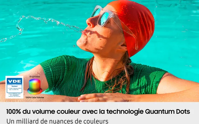 La puissance de l'IA en 4K Processeur Q4 AI Le processeur et son IA optimisent votre expérience en 4K. Un milliard de nuances de couleurs 100% du volume couleur avec la technologie Quantum Dots La technologie Quantum Dot garantit la meilleure image. A base de Quantum Dots, elle permet de reproduire parfaitement 100% du volume colorimétrique pour offrir des couleurs riches et éclatantes. Couleurs réalistes. Vous méritez le meilleur. Des couleurs vives et précises amplifiées par le filtre Quantum Dot de Samsung, sans cadmium, qui offre un volume de couleur de 100 %. Personnalisez votre expérience TV Avec One UI Tizen, vous accédez à toutes les fonctionnalités innovantes de Samsung. Vous profitez d'une expérience sécurisée par Samsung Knox sur l'ensemble des appareils SmartThings™. De plus, One UI Tizen prend en charge les mises à jour de Tizen OS pendant les 7 prochaines années. Accès à plus de 150 chaînes gratuites Du contenu 100% gratuit Accéder gratuitement à des chaines Samsung TV plus. Profitez des chaînes d'actualité, de sports ainsi que des films, des divertissements, de la musique, des émissions pour enfants et bien plus encore. Avec de nouveaux contenus ajoutées en permanence, il y a toujours plus à découvrir ! Plus fin que jamais Design ultra fin Un design élégant et fin qui s'intègre parfaitement à votre déco. Réglez votre téléviseur selon votre espace Pieds ajustables Bénéficiez d'une expérience visuelle optimale en réglant facilement la hauteur et la largeur du support de votre téléviseur. Un design idéal pour placer votre barre de son sous votre téléviseur. Un TV avec vous, pour longtemps Télécommande universelle solaire Dites adieu aux piles jetables avec la télécommande universelle solaire, équipée d'un panneau solaire à l'arrière. Le microphone intégré facilite également la fonction d'assistant vocal, ce qui en fait une télécommande innovante à plus d'un titre. Découvrez ce qu'il y a sur votre écran Click to Search Click to Search enrichit votre expérience visuelle en vous proposant instantanément des recommandations de contenu et plus de détails sur ce que vous regardez, en un seul clic. Vous pouvez découvrir des informations sur les acteurs, notamment leur biographie, leur filmographie et bien plus encore. Un assistant vocal encore plus intelligent Bixby Après mise à jour, Bixby est le parfait assistant de votre maison connectée. Il peut traiter plusieurs commandes à la fois et comprend mieux le contexte global. Profitez de conversations plus fluides, de recherches plus faciles, de réactions plus intuitives et d'un contrôle d'appareils sans faille. L'intelligence automatiquement au service de l'image et du son AI Mode Le AI Mode ajuste les paramètres d'image et de son adaptatifs, optimisant intelligemment votre expérience en fonction de votre environnement et du contenu que vous regardez. Créez vos propres fonds d'écran en fonction de votre humeur grâce à l'IA Adaptive Sound+ Vivez le son avec des voix claires et des tonalités équilibrées. Le processeur avec IA de votre téléviseur reconnaît les différents sons, les dialogues et la musique de fond. Il optimise aussi en fonction de l'acoustique de votre pièce, avant d'affiner le rendu grâce à la remastérisation audio. Des couleurs optimisées et boostées par l'IA Color Booster Pro L'IA reconnaît chaque scène et améliore l'expression des couleurs, rendant votre expérience visuelle plus vivante et dynamique. Une expérience cinématographique avec plus de contrastes Quantum HDR+ Un nouveau niveau de HDR analyse chaque scène pour offrir un meilleur contraste, des couleurs immersives et des détails plus riches, comme si vous étiez au cinéma. Profitez de couleurs certifiées par PANTONE Certifié PANTONE Symbole de la fidélité des couleurs reconnu par les experts du secteur, la certification « PANTONE Validated » certifie l'expression fidèle de 2 140 couleurs PANTONE et de 110 nouvelles nuances de peau. Vous avez ainsi l'assurance de profiter d'une expérience visuelle riche et réaliste. Vos contenus préférés en 4K 4K Upscaling L'Upscaling 4K vous offre une expérience visuelle améliorée en 4K pour tous vos contenus. Découvrez facilement et accédez à tous vos jeux vidéos à partir d'un écran Gaming Hub Votre téléviseur dispose d'un espace dédié aux jeux vidéo, regroupant des applications de cloud gaming en un seul endroit. Il propose également des recommandations basées sur vos préférences de jeu, vous permettant ainsi de découvrir facilement de nouvelles pépites. Des images fluides, nettes et précises Motion Xcelerator Profitez d'une expérience de jeu optimale grâce à la technologie Motion Xcelereator qui optimise en temps réel la fluidité de chaque image. Profitez d'un jeu fluide grâce à l'optimisation automatique des paramètres avec IA AI Auto Game Mode Laissez votre téléviseur détecter et s'adapter automatiquement au type de jeu auquel vous jouez pour vous proposer des paramètres optimales. Libérez-vous des tracas liés à la configuration des jeux et jouez. Optimisez votre expérience de jeu, pendant votre jeu Game Bar Optimisez et personnalisez encore plus votre immersion grâce à la barre de jeu qui vous permet d'accéder facilement aux différents paramètres de réglage. Éclairage immersif synchronisé avec votre jeu Hue Sync Créez une atmosphère dynamique avec des lumières intelligentes synchronisées avec votre contenu. Les TV Samsung peuvent analyser les couleurs et les mouvements à l'écran, puis envoyer des signaux aux lumières Hue pour un effet assorti, offrant une expérience de visionnage incroyablement immersive. TV et barre de son, une harmonie parfaite Q-Symphony La technologie Q-Symphony synchronise tous les haut-parleurs du téléviseur avec les haut-parleurs de la barre de son Q-Series. Ils fonctionnent simultanément pour un meilleur effet de son Surround. Un s