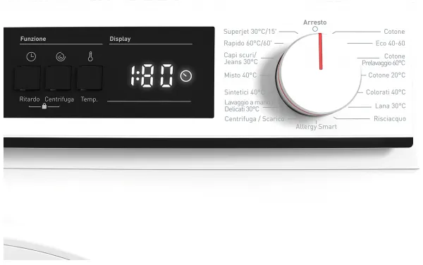 - Couleur, Coton, Cottons 20°C, Cottons with pre-wash, Eco 40-60°C, Poche, Hygiène/anti-allergie, Jeans/denim, Mix, Quick 15min, Rinçage, Tambour, Synthétiques, Laine