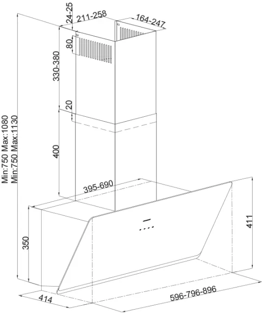 - 20e/1006 parmi les hottes avec évacuation vers l'extérieur