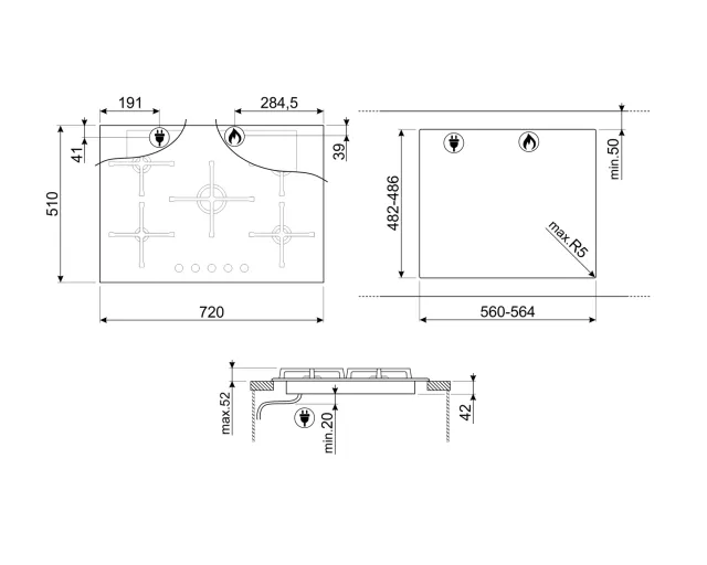 - 362e/468 parmi les plaques de cuisson Smeg au gaz