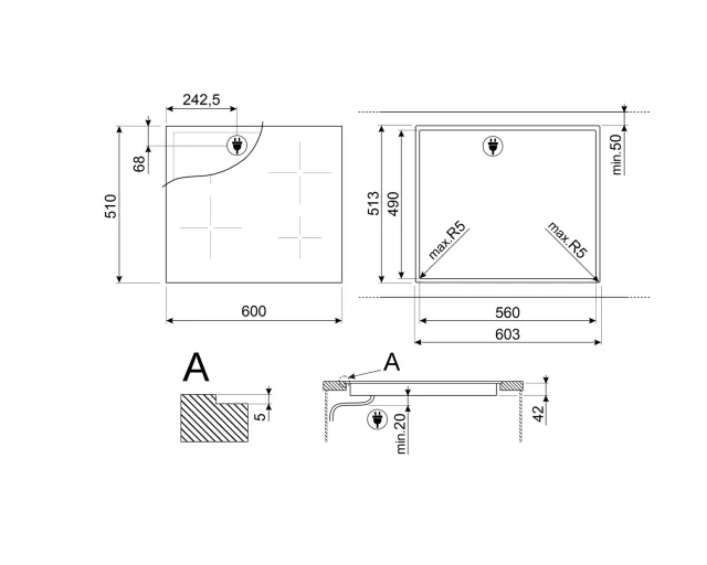 - 408e/713 parmi les Plaques de cuisson Smeg 4 feux