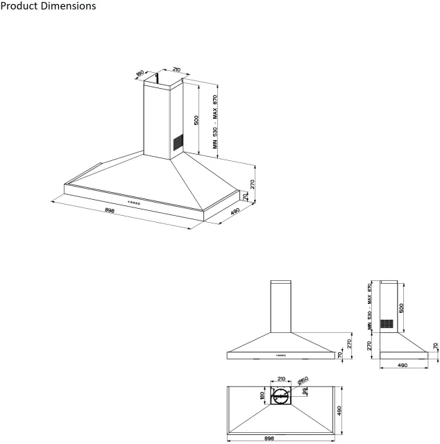 - 50e/290 parmi les hottes aspirantes 90 cm